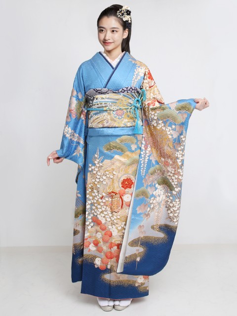 振袖・袋帯・帯締め・帯揚げ・二部式筒袖襦袢・重ね衿・襟芯・帯枕・帯板・腰紐・三重ひも・伊達締め・草履・バッグ・足袋・肌着