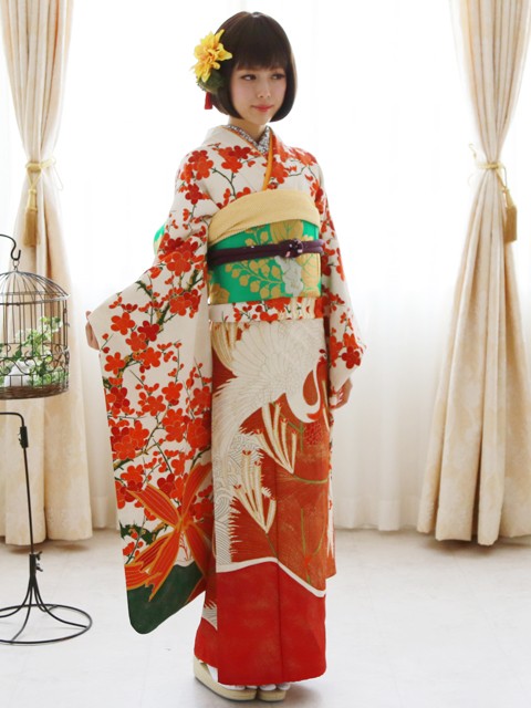 振袖・袋帯・帯締め・帯揚げ・二部式筒袖襦袢・重ね衿・襟芯・帯枕・帯板・腰紐・三重ひも・伊達締め・草履・バッグ・足袋・肌着