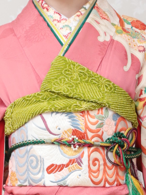 振袖・袋帯・帯締め・帯揚げ・二部式筒袖襦袢・重ね衿・襟芯・帯枕・帯板・腰紐・三重ひも・伊達締め・草履・バッグ・足袋・肌着
