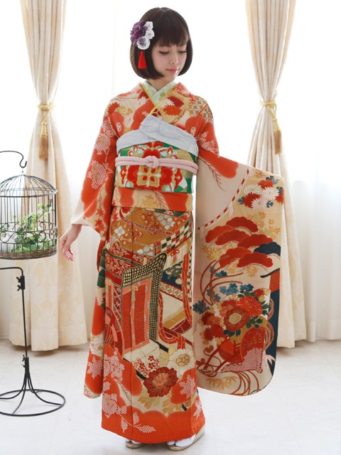 振袖・袋帯・帯締め・帯揚げ・二部式筒袖襦袢・重ね衿・襟芯・帯枕・帯板・腰紐・三重ひも・伊達締め・草履・バッグ・足袋・肌着