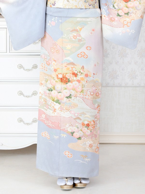 着物・袋帯・帯揚げ・帯締め・長襦袢又は筒袖襦袢・重ね衿・帯板・帯枕・腰ひも・伊達締め・襟芯・草履・バッグ・足袋・肌着