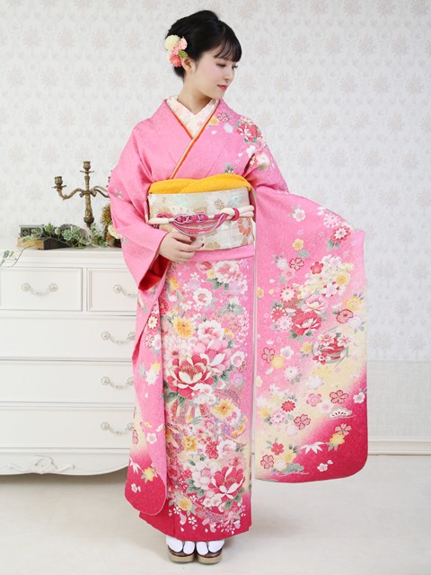 振袖・袋帯・帯締め・帯揚げ・二部式筒袖襦袢・重ね衿・襟芯・帯枕・帯板・腰紐・三重ひも・伊達締め・草履・バッグ・足袋・肌着