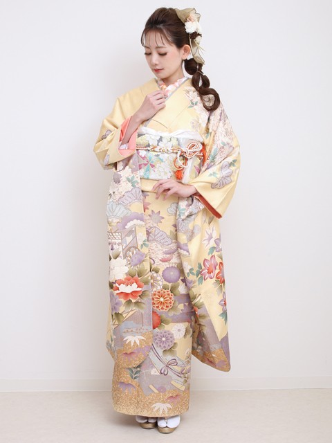 振袖・袋帯・帯締め・帯揚げ・二部式筒袖襦袢・重ね衿・襟芯・帯枕・帯板・腰紐・三重ひも・伊達締め・草履・バッグ・足袋・肌着
