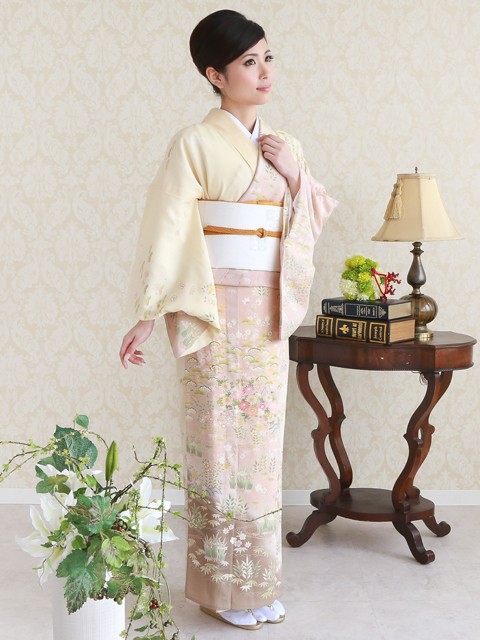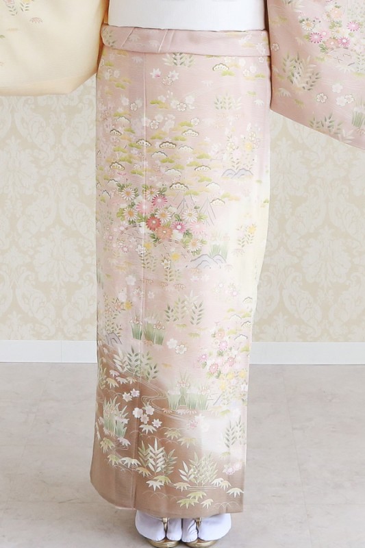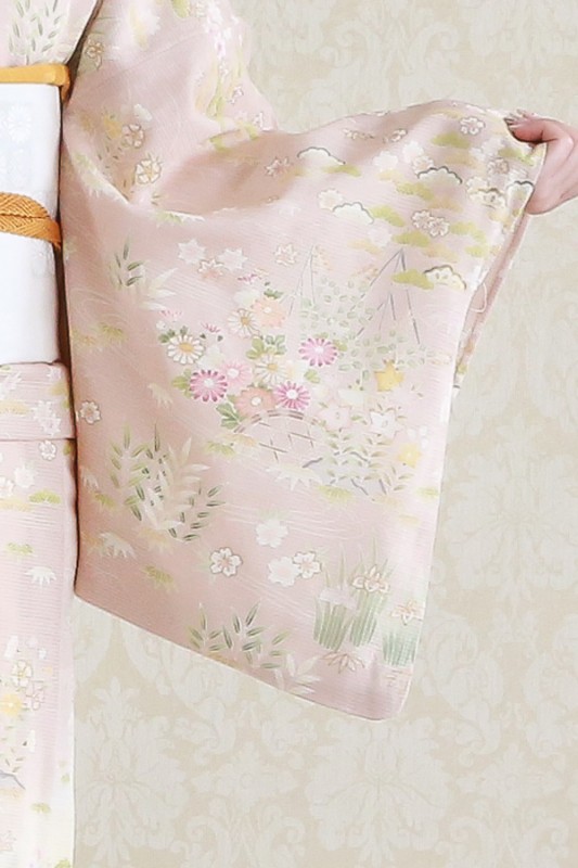 おちついた大人の雰囲気漂う訪問着ですが、柄付けは華やかで、繊細な四季の花がお着物全体に咲いています。高貴で風雅なイメージに。