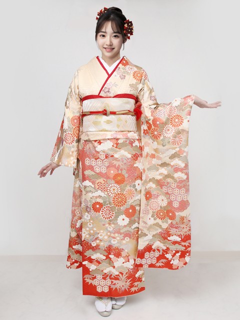 振袖・袋帯・帯締め・帯揚げ・二部式筒袖襦袢・重ね衿・襟芯・帯枕・帯板・腰紐・三重ひも・伊達締め・草履・バッグ・足袋・肌着