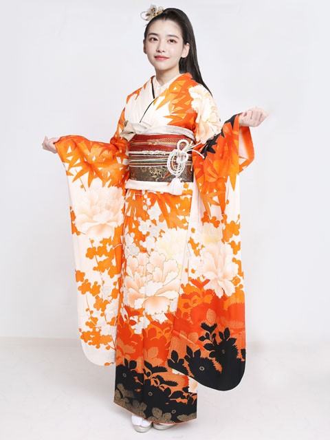 振袖・袋帯・帯締め・帯揚げ・二部式筒袖襦袢・重ね衿・襟芯・帯枕・帯板・腰紐・三重ひも・伊達締め・草履・バッグ・足袋・肌着