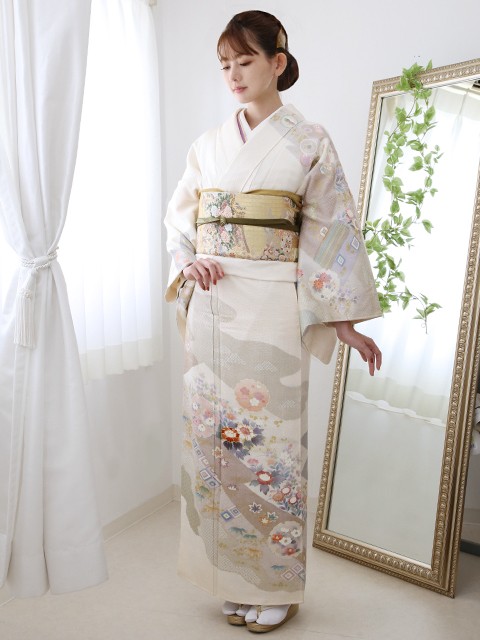 着物・袋帯・帯揚げ・帯締め・長襦袢又は筒袖襦袢・重ね衿・帯板・帯枕・腰ひも・伊達締め・襟芯・草履・バッグ・足袋・肌着