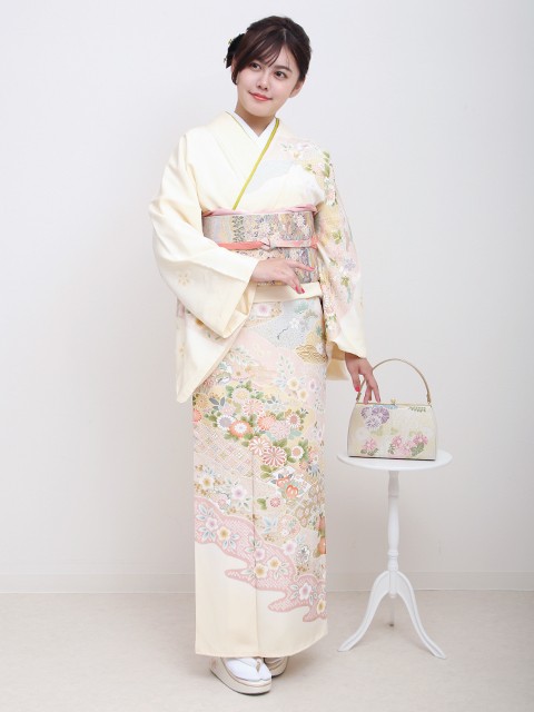 着物・袋帯・帯揚げ・帯締め・長襦袢又は筒袖襦袢・重ね衿・帯板・帯枕・腰ひも・伊達締め・襟芯・草履・バッグ・足袋・肌着